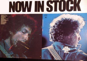 Now in Stock Bob Dylan's Greatest Hits Volume III" (play list printed on poster)