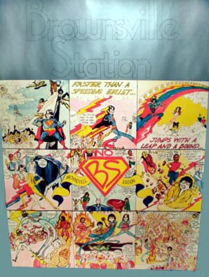 Brownsville Station was a band from Michigan who were popular in the 1970s. One of their earliest hits (1970) was called "Bebop Confidential" Their most famous song, "Smokin' In the Boys Room" (from their 1973 album Yeah![1]) was recognized as one of rock's earliest teen anthems, featuring angst filled lyrics, blaring guitars and a harmonica solo. The track reached #3 on U.S. charts. *If you want to see a detail pic of this rare and detailed poster, let me know and I'll email it to you. Printed on thick, glossy stock.