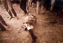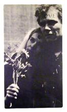 Photo of tripping hippie girl w/ people around her