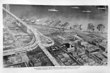 San Francisco-Oakland Bay bridge approches showing proximity to the buildings of Schmidt Lithograph Co.