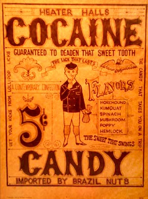 "The candy that takes you on a trip. The sweet that swings. A contemporary confection. Ideal for the hooked adolescent. Flavors: horehound kumquat spinach mushroom poppy hemlock." (printed on rice paper)