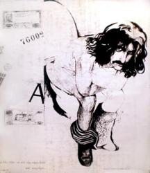 Famous shot of the avant-garde rock musician. This popular poster only encouraged the myth that he once took a crap onstage!