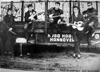 Has the names of all the members of the band written at the bottom including Stu Sutcliff