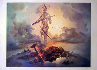 John Pitre was extremey popular during the 60's and 70's and painted important themes pertinent today such as over population, the threat of drugs and the ecological deterioration of our planet.