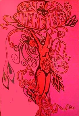 Extremely rare but damaged psychedelic art poster. Printed on thick, foil-coated paper.