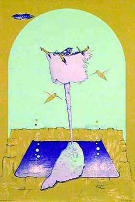 Strange but cool psychedelic silkscreen illustration by the artist Musik. Printed on heavy, glossy paper stock