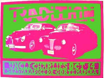 The back side of the card has a cute picture of Ben Friedman (my former boss and the owner of Postermat, the famous 60's poster and record shop in San Francisco)and a pumpkin painted to look like his old cat "Kitty Kitty" who the patrons loved!