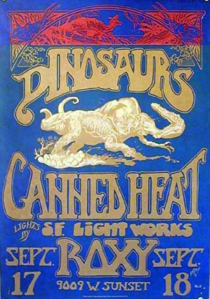 SKU: 2137Publisher: San Anselmo PrintingColor: ColorDescription: Dinosaurs,Canned Heat at the Roxy, San Francisco Sept. 17th 1982. Catalog: ConcertArtist: Alton KelleyYear: 1982Condition: 2.0-2.5Product Width: 14.25”Product Length: 20”$150.00