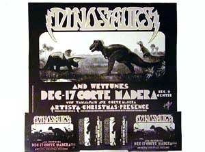 SKU: 2031Color: ColorDescription: Printed on med weight glossy stock. Dinosaurs, Wettunes at the Corte Madera Center, California December 17th 1982 Catalog: ConcertArtist: Alton KelleyYear: 1982Condition: 2.0-2.5Product Width: 18”Product Length: 25”$150.00
