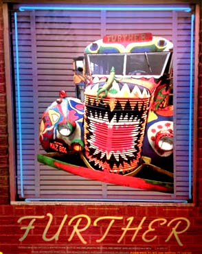 Ken Kesey had a considerable share in the invention of what has since come to be known as the counterculture of the 1960s. He authored the sensational best-selling novel, One Flew Over the Cuckoos Nest in 1962. In 1964, Ken Kesey and a group of friends, relatives and devotees embarked a battered 1939 International Harvester school bus, to go on a cross-country ride to New York. Boldly named FURTHUR (fusing "further" and "future"), the bus was especially prepared for the occasion. The seats were replaced by couches, many-colored iridescent day-glo sprays were applied liberally to enhance the coating, and an intricate sound and film equipment was installed, not merely for entertainment, but to document the outing. Enormous footage on celluloid and audio tape was produced along the way (much of which still awaits examination in the Prankster Archives).