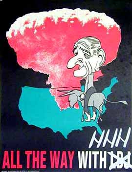 This satirical poster aimed against former President Lyndon Johnson, who was in office during the war in Vientam, was created in 1968 by Happening Press. It is in mint condition (what looks like flaws is only glare) and is printed on heavy paper stock.