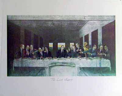 SKU: 261Color: ColorDescription: This scathing political poster, which depicts Nixon and his cronies in their "last supper" together, It is in mint condition and is printed on glossy paper stock. Catalog: PoliticalYear: Bootleg made in 70’sCondition: 1.0Product Width: 22”Product Length: 28”$30.00