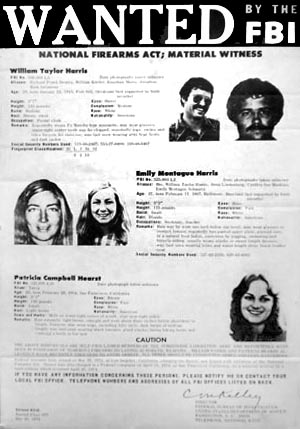 RARE! Original "Wanted" poster, distributed in San Francisco by the F.B.I.! Patty Hearst Shaw is the grandaughterof publishing magnate William Randolph Hearst and great-granddaughter of self-made millionaire George Hearst, she gained notoriety in 1974 when, following her kidnapping by the Symbionese Liberation Army (a revolutionary anti-government group), she ultimately joined her captors in furthering their cause. Apprehended after having taken part in a bank robbery in San Francisco with other SLA members, Hearst was imprisoned for almost two years before her sentence was commuted by President Jimmy Carter. Printed on thin, matte stock