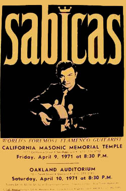 World famous guitarist at California Masonic temple and Oakland Auditorium. Printed on cardboard stock
