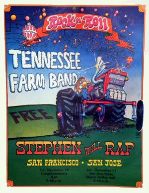 SKU: 1491Color: ColorDescription: Tenessee Farm Band in San Francisco at the Longshoremen's Hall and San Jose State Morris-Dailey Aud. (concert promo for free show) Catalog: ConcertYear: 60’s or 70’sCondition: 2.0Product Width: 17.5”Product Length: 23 1/8”$175.00