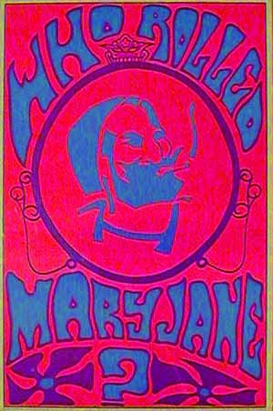 WHO ROLLED MARY JANE? This classic image of the Zig-Zag Man was very popular in the 60's and 70's and this original printing was made back in 1969. It glows extremely bright under a blacklight and is in mint condition (still in the original plastic rolled tube!).